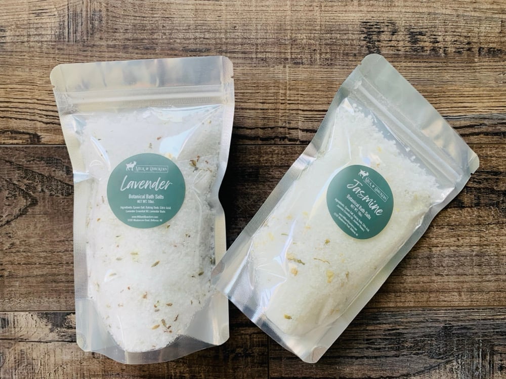 Take a nice relaxing soak with our new botanical fizzing bath salts. These salts are made with essential oils and real dried botanicals. Add a little to your bath and soak away your troubles. These are generous sized bags at 11oz so you'll get several baths from each bag!