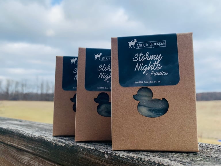 Stormy Nights- This soap is made with ground pumice. It begins with top notes of ozone, fresh air, and white flowers; followed by middle notes of ylang ylang and tuberose; and well balanced with base notes of patchouli and musk.